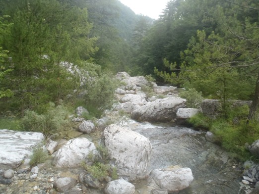 Enipea-Schlucht; der Olymp ist wolkenverhangen!