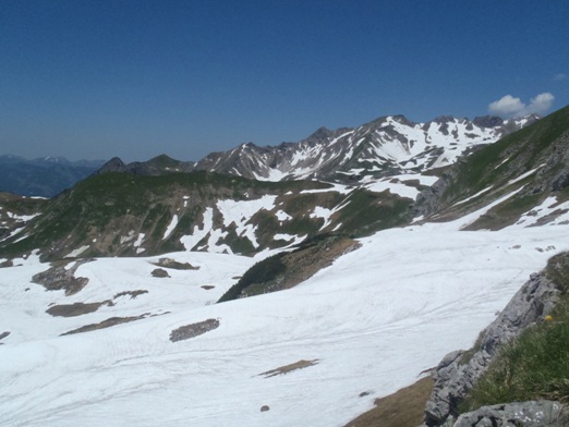 Der Gottesacker vor dem Hohen Ifen ist noch komplett zugeschneit. Wie das