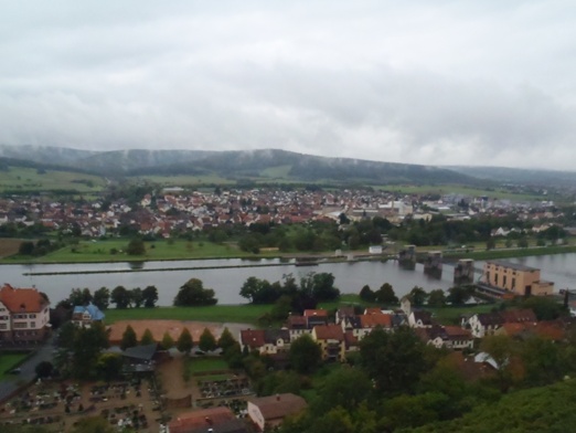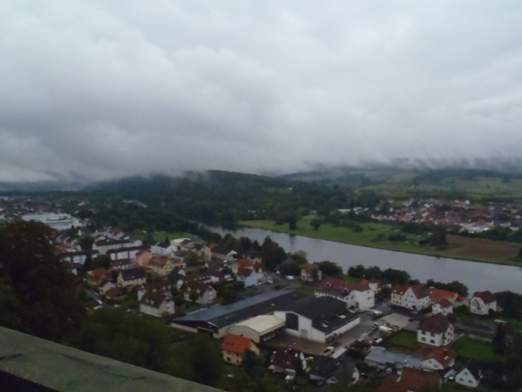 Blick hinunter an den Main. Die Wolken hängen tief.