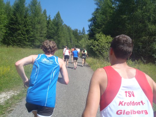 ersten Läufer vor mir in den Gehschritt, bevor wir den Asphalt verlassen,