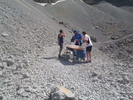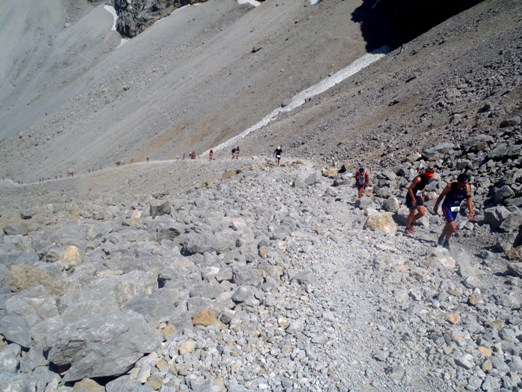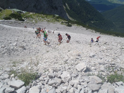 Vorsichtig und bedächtig bewegt man sich im lockeren Geröll.