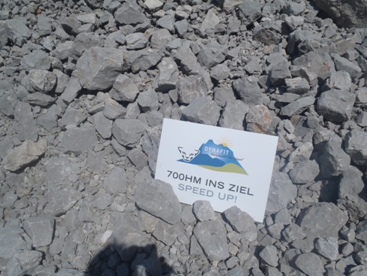 halb erkennen, was dort geschrieben steht: "900 Höhenmeter ins Ziel"! Ich