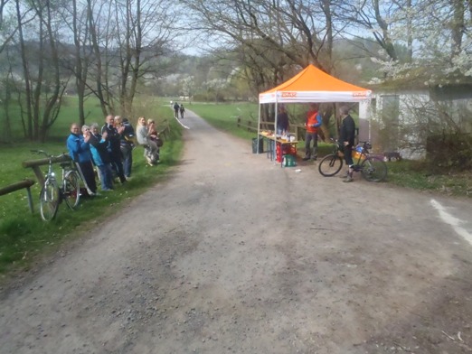 Letzter Verpflegungsstopp mit motivierendem Beifall.