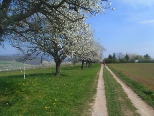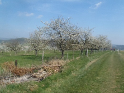 Vorbei an Kirschbäumen steht der letzte, sehr lange Kilometer an.