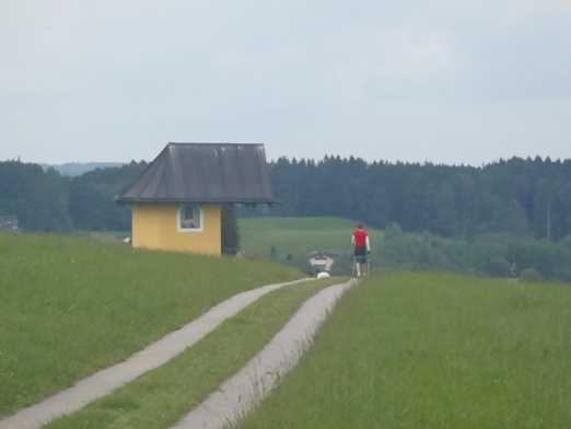 wieder ab, durchqueren ein kurzes Waldstück und sind wieder in der
