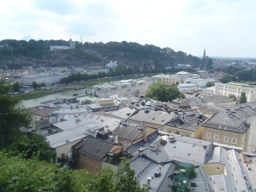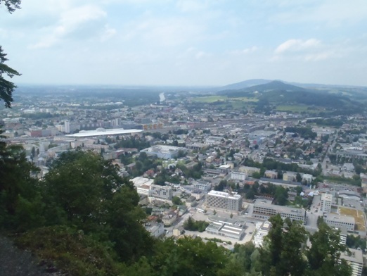 Der Mönchsberg am anderen Ufer der Salzach. Hier hört man schon den Lärm aus