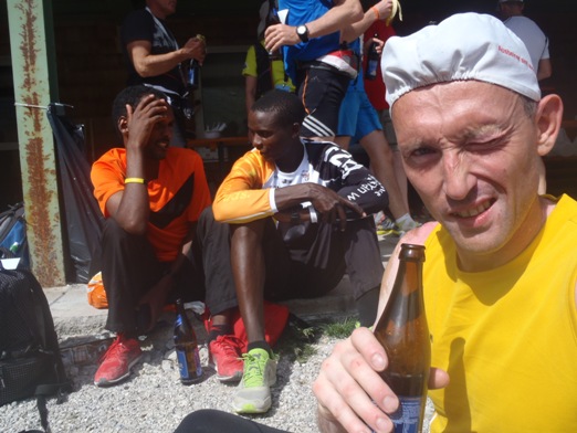 Funktionsshirt von Dynafit und warme Zielverpflegung zum alkoholfreiem Bier,