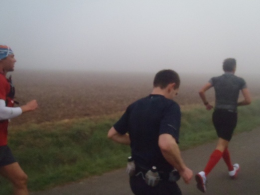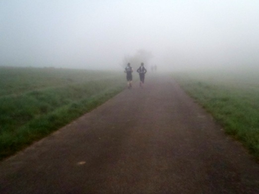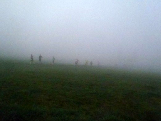 Uhr noch etwas unentschlossen im Startbereich. Dicker Nebel verhüllt die