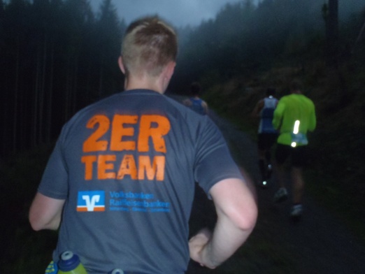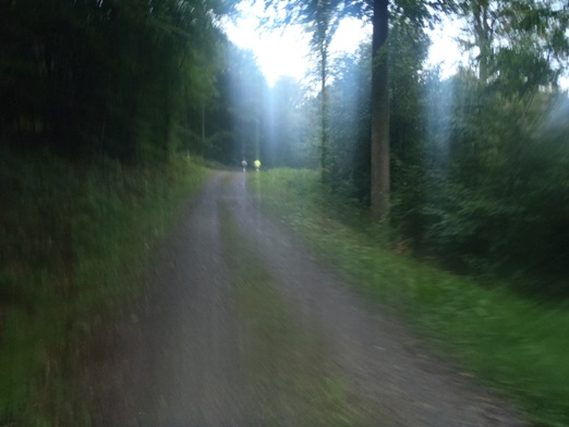 Mit den 3 Weltklasse-Läufern im Dunkel des Waldes.