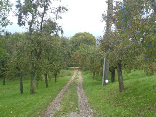 Über Graswege an einer Baumschule entlang. Überraschend führt keiner dieser
